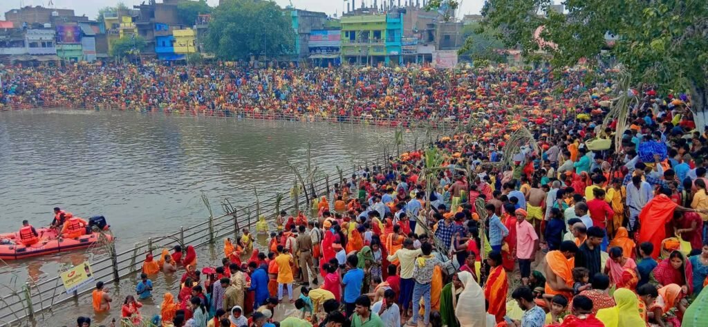 मंगलवार की सुबह गोह प्रखंड का देवकुंड तालाब भक्तिमय माहौल में सराबोर दिखा, जब हजारों श्रद्धालुओं ने उदयमान सूर्य को अर्घ्य समर्पित कर लोक आस्था के महापर्व छठ का समापन किया। लगभग 40 हजार से अधिक व्रतियों ने भगवान भास्कर को दूध, जल और फल से अर्घ्य अर्पित किया।भोर होते ही घाटों पर हर ओर ‘जय छठी मइया’ के जयघोष गूंज उठे। महिलाओं ने पारंपरिक वेशभूषा में जल में खड़े होकर पूजा-अर्चना की, जबकि पुरुष श्रद्धालुओं ने व्यवस्था और पूजा सामग्री की देखरेख की। अर्घ्य के बाद व्रतियों ने पारण कर चार दिनों के कठिन व्रत का समापन किया।सहस्त्रधारा तालाब जाने वाले मार्ग पर मेले जैसा दृश्य रहा। दुकानों पर प्रसाद, खिलौने और पकवानों की महक से पूरा वातावरण सजग और जीवंत बना रहा। पूजा-अर्चना के बाद प्रसाद वितरण का दौर देर सुबह तक चलता रहा।प्रखंड के दूर्गा मंदिर स्थित पोखरा, देवहरा एवं शेखपुरा पुनपुन नदी, पेमा, मलहद, अमारी, डिहुरी नहर सहित देवकुंड शास्त्र कुंड धारा जैसे प्रमुख घाटों पर भी श्रद्धालुओं की अपार भीड़ उमड़ी। हर घाट पर छठ गीतों से वातावरण गूंजायमान रहा।सुरक्षा की दृष्टि से जिला प्रशासन और स्थानीय पुलिस ने पुख्ता इंतजाम किए थे।महिला व पुरुष पुलिस बल घाटों पर तैनात रहे। बिजली विभाग के कर्मी भी सभी घाटों पर तैनात थे खूद सहायक विद्युत अभियंता अजित कुमार व कनिय विद्युत अभियंता सुरज कुमार इस महापर्व को लेकर चौकन्ने थें।स्थानीय स्वयंसेवकों ने भी श्रद्धालुओं को सहयोग प्रदान किया।कई जगहों पर छठ व्रतियों को निशुल्क फल, प्रसाद,चाय सरबत का वितरण किया गया।भक्तों की भीड़ और आस्था देखकर स्पष्ट था कि सूर्य देव के प्रति जनमानस की श्रद्धा हर वर्ष और अधिक प्रगाढ़ होती जा रही है।