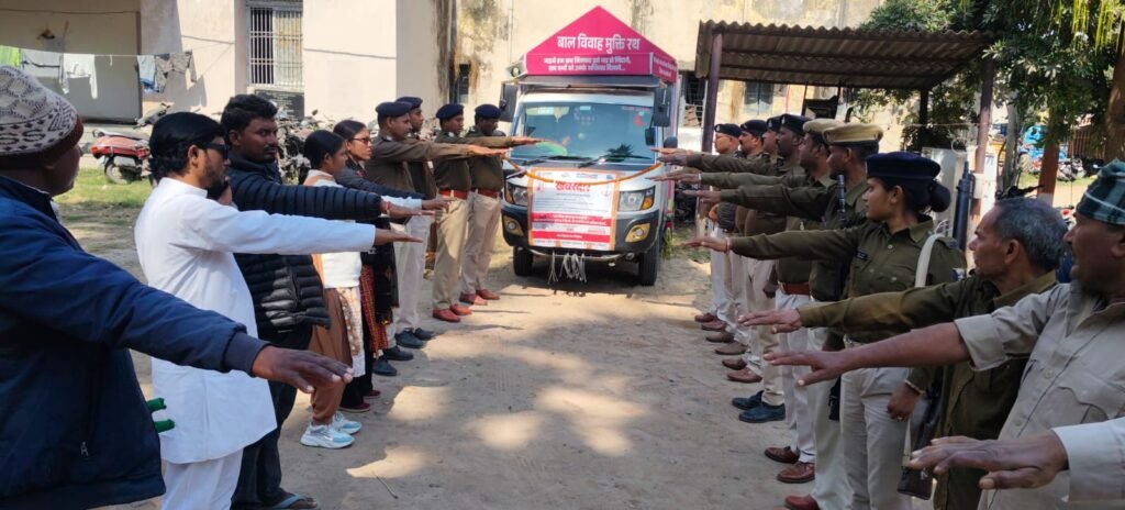 गोह थाना में बाल विवाह जैसी सामाजिक बुराई को जड़ से मिटाने और ‘बाल विवाह मुक्त भारत’ के संकल्प को धरातल पर उतारने के उद्देश्य से मंगलवार को गोह थाना परिसर में न केवल शपथ ग्रहण समारोह का आयोजन हुआ,बल्कि जागरूकता फैलाने के उद्देश्य से एक ‘बाल विवाह मुक्ति रथ’ को भी रवाना किया गया।थानाध्यक्ष प्रशांत कुमार सिंह एवं अन्य वरीय पुलिस पदाधिकारीयों ने हरी झंडी दिखाकर रथ को रवाना किया।यह कार्यक्रम औरंगाबाद की अग्रणी संस्था दीप ज्योति कल्याण संस्थान की टीम द्वारा आयोजित किया गया,संस्थान के प्रतिनिधि डीसी रितेश कुमार ने कहा कि बाल विवाह न केवल एक कानूनी अपराध है, बल्कि यह बेटियों की शिक्षा, स्वास्थ्य और सुरक्षा के मार्ग में सबसे बड़ी बाधा है। उन्होंने जोर देकर कहा कि कम उम्र में शादी होने से बालिकाओं के सपने दम तोड़ देते हैं और उनका भविष्य अंधकारमय हो जाता है। समाज को जागरूक कर ही इस कुप्रथा पर पूर्ण विराम लगाया जा सकता है।इस अवसर पर थानाध्यक्ष सह पुलिस निरीक्षक श्री प्रशांत कुमार सिंह ने उपस्थित सभी पुलिस पदाधिकारियों, जवानों और चौकीदारों को पुलिसकर्मियों, जवानों व चौकीदारों को शपथ दिलाई कि वे बाल विवाह रोकेंगे, प्रयास की सूचना सरकारी तंत्र को देंगे तथा बच्चों के अधिकारों की रक्षा करेंगे।मौके पर एएसआई सत्येंद्र कुमार सिंह, एएसआई रविन्द्र कुमार,एएसआई अमर कुमार,एएसआई राम भजन कुमार, सचिन चंद्रवंशी,सहित थाना के दर्जनों पुलिसकर्मी एवं अन्य समाजसेवी मौजूद थे।