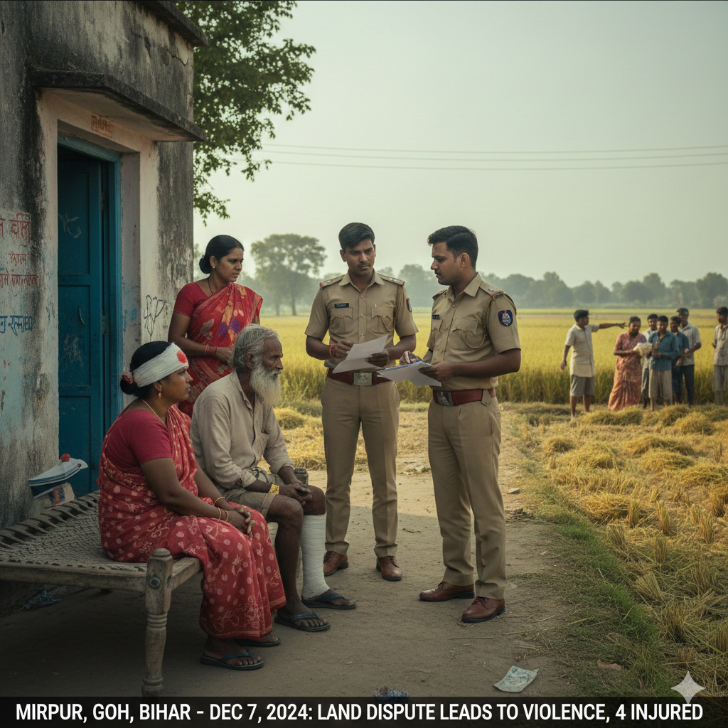 शनिवार को गोह थाना क्षेत्र के मीरपुर गांव में धान कटनी को लेकर दो पक्षों में मारपीट की घटना घटी। मारपीट की घटना में दो महिला सहित चार लोग घायल हो गए। घायलों का इलाज प्रखंड मुख्यालय स्थित प्राथमिक स्वास्थ्य केंद्र में किया गया। थानाध्यक्ष प्रशांत कुमार सिंह ने बताया कि प्रथम पक्ष के कामेश्वर साव की पत्नी के बयान पर कांड संख्या 340/25 दर्ज किया गया है, जिसमें चार महिला समेत अनिल साव, भीमराज, धर्मराज, कमलेश साव को आरोपित किया गया है। वहीं दूसरे पक्ष के अनिल साव की पत्नी के बयान पर कांड संख्या 341/25 दर्ज की गई है, जिसमें दो महिला सहित मोतीलाल साव, कामेश्वर साव, राजू कुमार को आरोपित किया गया है। प्रथम पक्ष द्वारा जिला पदाधिकारी एवं आरक्षी अधीक्षक महोदय को आवेदन देकर मामले की जांच कराने की मांग की है। थानाध्यक्ष ने बताया कि दोनों के बीच पूर्व से ही भूमि विवाद का मामला चल रहा है। मामले की जांच करने का निर्देश संबंधित पुलिस पदाधिकारी को दी गई है।
