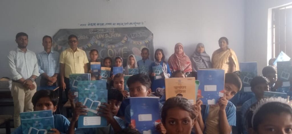 गोह। पुस्तक की सहायता एवं शिक्षको के मार्गदर्शन से बच्चो में बौद्धिक विकास होता है। उक्त बातें समग्र शिक्षा अभियान के उत्प्रेरक अनिरुद्ध विश्वकर्मा उर्फ दिलीप ने प्रखंड के जैतिया मिडिल स्कूल में पुस्तक वितरण समारोह में संबोधित करते हुए कहा। उन्होंने कहा कि पुस्तक से विषयवार जानकारी प्राप्त करते हैं तो वहीं शिक्षक उनमें व्यवहारिक एवं चारित्रिक ज्ञान देते हैं। नए शैक्षणिक सत्र 2026 – 2027 के पुस्तक एवं स्टेशनरी पाकर पिंकी कुमारी, रिम्शा खातून, फैजान खान, आदित्य कुमार, दीपक राज कुमार,रेहान अंसारी,तरन्नुम परवीन,सबरीन खातून,अंचली कुमारी समेत अन्य बच्चे काफी खुश दिखें। विद्यालय के प्रभारी प्रधानाध्यापक जसीम अहमद ने कहा कि उनके विद्यालय के फिलहाल, 195 बच्चो में शैक्षणिक किट का वितरण किया गया। जिसमें कॉपी, डायरी, पुस्तक सहित अन्य शिक्षण सामाग्री शामिल है। शिक्षिका फरहत बानो, बसंती कुमारी, मोआजम्मा खातून एवं श्रीनिवास कुमार ने बच्चो को प्रत्येक दिन ड्रेस में ससमय विद्यालय आने का आग्रह किया। शिक्षको ने कहा कि सरकार शिक्षा में गुणवत्तापूर्ण सुधार लाने के लिए कई महत्वपूर्ण योजना के तहत विद्यालय में सभी आवश्यक सामाग्री उपलब्ध करा रही है। इस मौके पर समुदाय के भी कई लोग उपस्थित थे।