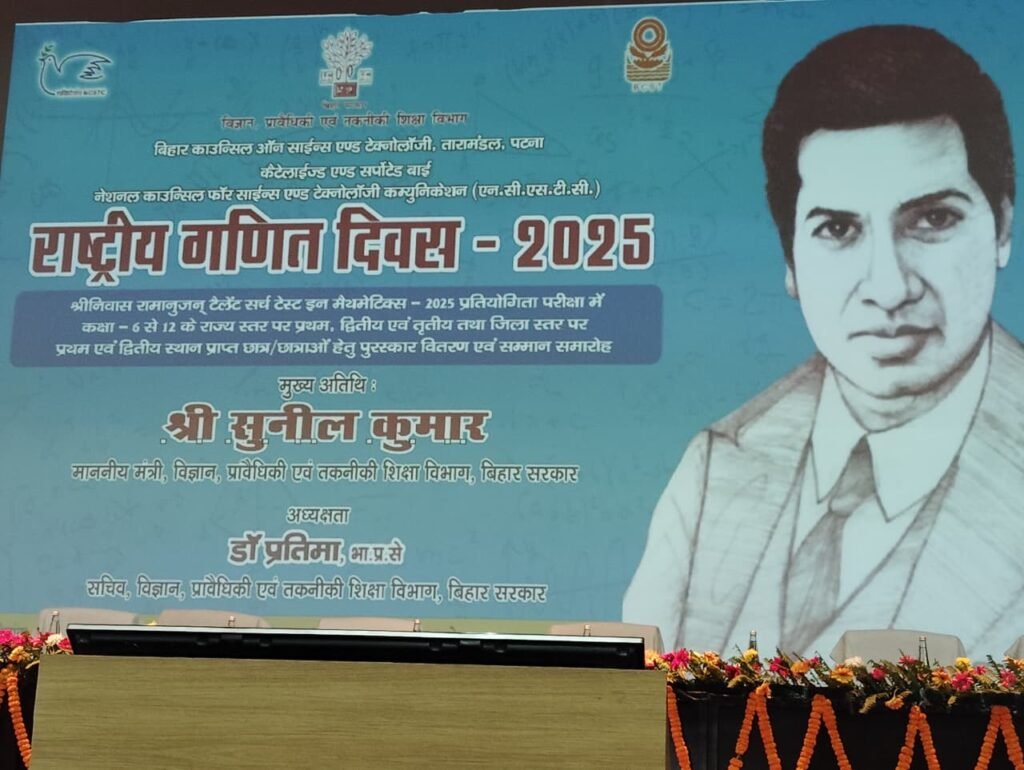 महान गणितज्ञ श्रीनिवास रामानुजम की जयंती के अवसर पर 22 दिसंबर को पटना के गांधी मैदान स्थित ज्ञान भवन में एक भव्य समारोह आयोजित किया गया। इस अवसर पर मुख्य अतिथि माननीय शिक्षा मंत्री सुनील कुमार ने जिले में प्रथम और द्वितीय स्थान प्राप्त करने वाले विद्यार्थियों को प्रशस्ति पत्र और मेडल देकर सम्मानित किया। अन्य स्थान प्राप्त करने वाले छात्रों को औरंगाबाद के अरथुआ इंजीनियरिंग कॉलेज के प्रधानाध्यापक द्वारा पुरस्कृत किया गया।