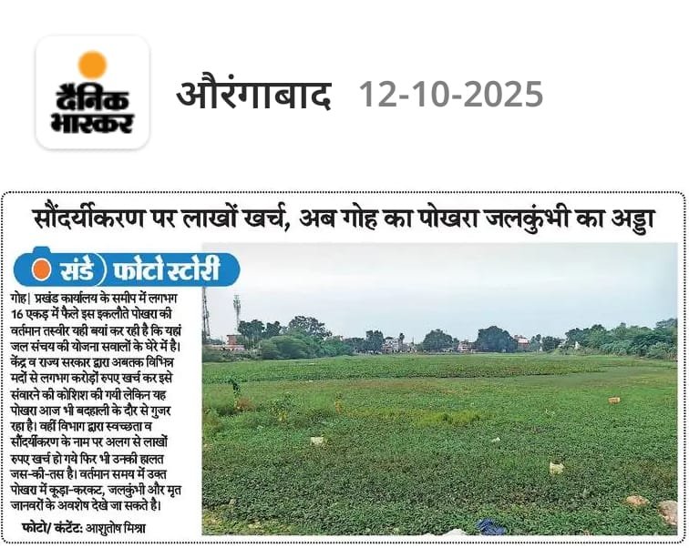 एक समय था जब गोह प्रखंड का सबसे अधिक भीड़ वाले छठ घाटों में गिनतीं प्रखंड मुख्यालय का तालाब हुआ कर्ता था,छठ व्रतियों द्वारा यही भगवान भास्कर को अर्घ्य देकर मां दुर्गा मंदिर में पूजा अर्चना कर अपने व्रत को पूर्ण करती थी, लेकिन बदलते समय के साथ यह भीड़ धीरे धीरे घटती चली गई।दिन प्रतिदिन प्रखंड मुख्यालय का यह तालाब कचरे के ढ़ेर और जलकुंभी के आगोश में समाती चली जा रही है।बोतल प्लास्टिक और जले दोने-पत्तल बिखरे पड़े हैं,जो एक सवाल खड़ा करता है कि क्या ऐसे में छठ मैया का अर्घ्य दें पाना संभव है।