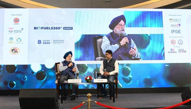 पेट्रोलियम एवं प्राकृतिक गैस मंत्री श्री हरदीप सिंह पुरी ने आज पायनियर बायोफ्यूल्स 360 शिखर सम्मेलन के अवसर पर फायरसाइड चैट सत्र में भाग लेते हुए कहा कि “भारत की इथेनॉल यात्रा अब थमने वाली नहीं है।”इथेनॉल मिश्रित पेट्रोल (ईबीपी) कार्यक्रम की सफलता पर एक प्रश्न के उत्तर में, मंत्री महोदय ने इस बात पर प्रकाश डाला कि इथेनॉल मिश्रण को 2014 के बाद ही, जब प्रधानमंत्री नरेंद्र मोदी ने पदभार ग्रहण किया, गंभीर गति मिली। 2014 में, इथेनॉल मिश्रण मात्र 1.53% था। 2022 तक, भारत ने निर्धारित समय से पाँच महीने पहले ही 10% मिश्रण प्राप्त कर लिया। 2030 तक 20% मिश्रण (ईबीपी) का मूल लक्ष्य 2025 तक बढ़ा दिया गया था और वर्तमान इथेनॉल आपूर्ति वर्ष (ईएसवाई) में ही इसे प्राप्त कर लिया गया है। मंत्री महोदय ने कहा कि यह सफलता इथेनॉल के लिए गारंटीकृत मूल्य निर्धारण, बहु-प्रयुक्त फीडस्टॉक्स की अनुमति और देश भर में आसवन क्षमता का तेज़ी से विस्तार जैसे निरंतर नीतिगत सुधारों के माध्यम से संभव हुई है।